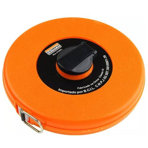 Trena Com Caixa Em Plástico. Abã Fechada E Fita De Medição Em Fibra De Vidro Com 30 m De Comprimento E 13 mm De Largura, Precisão Classe III. Possui Manivela Com Trava Para Recolhimento Da Fita. Graduação Em Milímetros. Dos Dois Lados. Indicado Para Medições De Áreas E Superfícies Em Geral. Embalagem: Caixa De Papelão Com 1 Peça.
