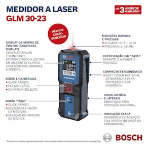 Trena laser bosch 30m modelo glm 30-23 profissional