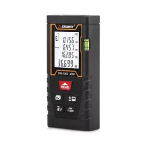 Trena Laser Digital de Alta Precisão Sndway- 40m Trena Laser Digital de Alta Precisão Sndway- 40m Trena projetada especialmente para medir a distância com precisão.Vem com a função de área de medição, volume, adição, subtração. Capacidade de armazenamento de 30 dados. alcance máximo de 40 metros PRINCIPAIS CARACTERÍSTICAS: -desligamento automático -alcance de 40 metros -cálculo de área -cálculo de volume -tela LCD -precisão de 2mm -alimentação: 2 pilhas AAA Características: Medição instantânea da distância, da área & do volume com uma operação do botão: sim Ampla faixa de medição: sim Precisão alta: 2mm 0.079 polegadas Cálculo automático da área e do volume: sim Medição indireta pelo teorema de pitágoras: sim Único/medição contínua: sim Rastreamento de distância máximo/min valor de exibição : sim Adição fácil/subtração da medida: sim Configurar frente/traseira benchmark: sim Medidor selecionável m , polegadas in e pés ft : sim Armazenamento de dados/função de recall: sim Retenção de dados/função clara de dados: sim Nível de bolha de ar: sim, incluído Alvo fácil com ponteiro laser brilhante: sim Lcd grande com luz de fundo e exibição multi-linha 4 linhas : sim Correção automática e tecnologia de relatório de erro: sim Indicação Buzzer: SIM Indicação do estado da bateria: sim Proteção ip54 prova de poeira e respingo : sim Função de desligamento automático/manual: sim Multifunction com cálculo inteligente: sim Design compacto e acessível: sim Ce, rohs, certificado da fcc: sim Marca: Sndway