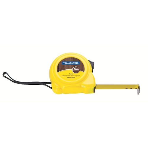 Você necessita de precisão e qualidade na hora de fazer medições. Por isso, você precisa ter em casa a Trena Tramontina com Fita de Aço 5 m. Com graduação em centímetros e polegadas, ela vai facilitar suas atividades pois tem retorno automático da fita, além de trava, para que as medições sejam feitas de forma prática e rápida. A ferramenta certa para você que preza por praticidade e agilidade nas tarefas! Orientações Fita em aço temperado.Graduação em milímetros e polegadas.Corpo em plástico ABS.Trava para fixar a fita métrica.Cinta para facilitar o transporte.Fita com 3 rebites para maior segurança.Todas as ferramentas de medição são inspecionadas e verificadas para manter um alto nível de precisão.As ferramentas são submetidas a testes de aplicação prática para garantir sua resistência em uso intenso.As ferramentas são produzidas e testadas conforme normas específicas. Características Gerais EAN13 7891114147476 DUN14 17891114147473 NCM 9017.80.10 Peso Líquido 0,2000 kg. Peso Bruto 0,2000 kg. Metragem 0,000842 m³. Dimensões Embalagem (Compr. X Larg. X Alt.) 110x 170x 45 mm. Dimensões Produto (Compr. X Larg. X Alt.) 110x 170x 45 mm. Cor 1 FDD200 Hexa Dimensão Extra A 69,5 mm. Dimensão Extra B 69,5 mm. Dimensão Extra C 32,6 mm. Dimensão Extra D 37,3 mm. Observações Use óculos, luvas e outros equipamentos de proteção de acordo com a tarefa a ser executada. Mantenha a ferramenta sempre limpa para um melhor agarre, pois usá-la suja com graxa ou óleo pode causar acidentes. Armazene em local limpo e seco.