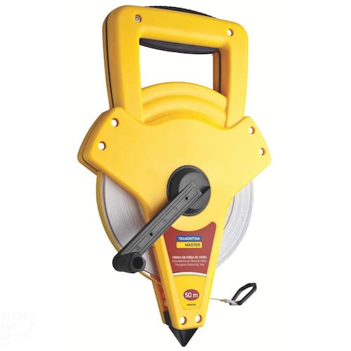A Trena Tramontina em Fibra de Vidro com Corpo em ABS 50 m é perfeita para quem necessita de uma ferramenta para longas distâncias. Para quem trabalha em topografia, perícias e na construção de grandes empreendimentos, a trena é indispensável por ser produzida em fibra de vidro evitando a condução de eletricidade e garantindo mais segurança. Você terá mais leveza podendo carregá-la para qualquer lugar, além de ser resistente à corrosão devido ao corpo feito em ABS. A empunhadura emborrachada garante mais conforto no manuseio, assim como, mais facilidade na hora da limpeza da fita. Qualidade é com a Tramontina! Orientações Corpo em ABS injetado.Fita em fibra de vidro.Empunhadura emborrachada.Ponta para fixação no solo.Todas as ferramentas de medição são inspecionadas e verificadas para manter um alto nível de precisão.As ferramentas são submetidas a testes de aplicação prática para garantir sua resistência em uso intenso.As ferramentas são produzidas e testadas conforme normas específicas. Características Gerais EAN13 7891114050899 DUN14 17891114050896 NCM 9017.80.10 Peso Líquido 0,6500 kg. Peso Bruto 0,6500 kg. Metragem 0,003564 m³. Dimensões Embalagem (Compr. X Larg. X Alt.) 360x 220x 45 mm. Dimensões Produto (Compr. X Larg. X Alt.) 359x 217x 36 mm. Cor 1 FFD200 Hexa Dimensão Extra A 217,0 mm. Dimensão Extra B 164,5 mm. Dimensão Extra C 36,2 mm. Dimensão Extra D 359,0 mm. Observações Use óculos, luvas e outros equipamentos de proteção de acordo com a tarefa a ser executada. Mantenha a ferramenta sempre limpa para um melhor agarre, pois usá-la suja com graxa ou óleo pode causar acidentes. Armazene em local limpo e seco.