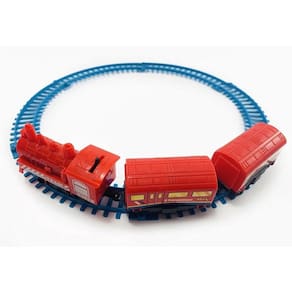 - quantidade de peças: 9 6 trilhos e 3 locomotivas