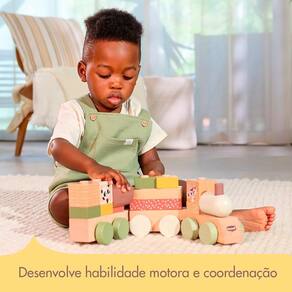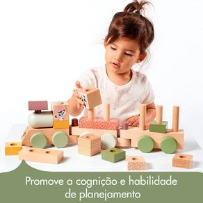 Trenzinho de Madeira Boho Chic - Tiny LoveO Trenzinho de Madeira da Tiny Love é uma adorável composição de 14 blocos empilháveis, acompanhados por encantadores personagens da exclusiva Coleção Boho Chic e 3 vagões interconectáveis. Este brinquedo não apenas proporciona diversão, mas também estimula a criatividade e a coordenação motora fina das crianças.Características: 14 Blocos Empilháveis: Os blocos foram projetados para empilhar de maneiras diversas, permitindo que o seu pequeno experimente várias opções de montagem, moldando um novo trem a cada brincadeira. Lindos Personagens Boho Chic: Apresenta personagens encantadores da Coleção Boho Chic, enriquecendo o universo visual do trenzinho e proporcionando uma experiência estética única. 3 Vagões Interconectáveis: Os vagões são projetados para serem facilmente conectados, estimulando a criança a explorar diferentes combinações e criar seu próprio trenzinho personalizado.Design Moderno e Sustentável: Feito em Madeira: O trenzinho é confeccionado em madeira de alta qualidade, proporcionando durabilidade e uma sensação natural ao toque. Cores Suaves em Tons Terrosos: Com um design moderno e cores suaves em tons terrosos, o trenzinho adiciona um toque de tranquilidade a qualquer ambiente. Estimula o Desenvolvimento Infantil: Além da diversão, este brinquedo contribui para o desenvolvimento cognitivo, a coordenação olho-mão e as habilidades motoras das crianças.Compromisso com o Desenvolvimento Infantil e a Sustentabilidade Ambiental: Sistema de Desenvolvimento Único: Desenvolvido por especialistas em desenvolvimento infantil, o sistema da Tiny Love foca em 6 habilidades essenciais, promovendo o crescimento saudável em cada estágio da jornada do bebê. Certificação FSC e Sustentabilidade: Certificado FSC garante a origem ética da madeira, proveniente de florestas geridas de forma responsável. Embalagens sem plástico desnecessário, compactas e recicláveis, demonstram o compromisso com a natureza.O Trenzinho de Madeira da Tiny Love é uma oportunidade para as crianças explorarem, criarem e aprenderem enquanto se divertem. Seja empilhando, conectando ou imaginando histórias, este trenzinho oferece uma experiência envolvente e educativa. Ean: 7290108863017