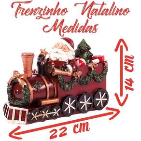 Trenzinho Natalino Decorativo Iluminado Resina 22cm - O Natal é tempo de celebrar o amor, comemorar a vida com novas esperanças, novos sonhos e também é a hora de deixar a casa mais bonita para receber a família nesta data tão importante. Você poderá realizar um Natal com toque de charme e bom gosto que contagiará seus convidados com o espírito natalino, deixando a sua casa decorada de uma forma diferente e apropriada para a data mais esperada do ano.