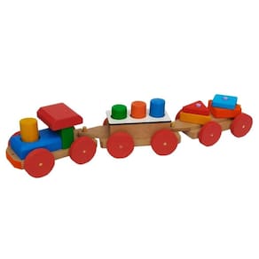 Lindo trenzinho de madeira colorido e educativo com peças geométricas