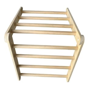 Triângulo Pikler Criado com o objetivo de estimular crianças a seguirem seus instintos por escalarem e se pendurarem de forma segura. Ele permite que a criança desenvolva habilidades como coordenação motoras grossas, força física, equilíbrio e agilidade