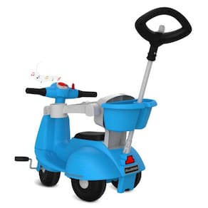 O Triciclo Banderetta Passeio & Pedal une charme retrô e diversão, permitindo que o adulto conduza com a haste direcionável no modo passeio ou que a criança pedale livremente no modo pedal. A transição entre as funções é fácil: basta travar o dispositivo roda livre e remover a haste, o cercado de proteção e o apoio para os pés.