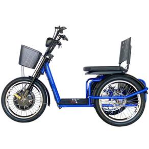 Triciclo Elétrico 800W Assento com Almofada Freio a Disco Alarme Fox Azul