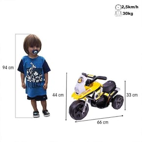 Possui efeitos de luz e som, pedal para que a criança possa acelerar e movimento para frente