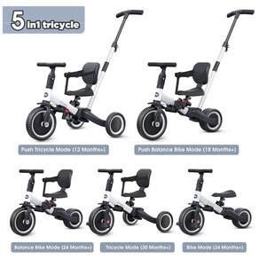 5 modos: Modo Push Tricycle, Modo Push Balance Bike, Modo Triciclo, Modo Balance Bike e Modo Bike. O triciclo multifuncional é adequado para meninos e meninas de 1, 2,3 e 4 anos. Guiador de direção: girando 135 graus para controlar e dirigir a velocidade e direção do triciclo. Protegendo seu filho de cair e se machucar. Também pode ser ajustado de acordo com a altura dos pais para que papai e mamãe possam acompanhar os treinos com seu pequeno. Guiador, assento e pedais ajustáveis: Pressione o botão vermelho para ajustar o guiador e o assento. Existem 3 posições para colocar os pedais ao transformar diferentes modos. Estrutura de aço carbono e rodas EVA: aprovadas pela EN188 e ASTM. Feito de aço carbono de alta qualidade, rodas sólidas de absorção de choque em EVA e assento em PP ecológico. Vida duradoura, design durável e elegante. Fácil acesso de uso: Muito mais fácil de montar guiador e rodas. Pressione os botões para convertê lo em diferentes modos. Adequado para crianças de 1 a 3 anos com menos de 110 centímetros 43,3 polegadas Marca: Não Informado