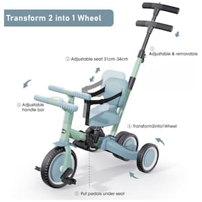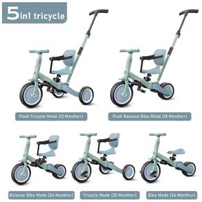 5 modos: Modo Push Tricycle, Modo Push Balance Bike, Modo Triciclo, Modo Balance Bike e Modo Bike. O triciclo multifuncional é adequado para meninos e meninas de 1, 2,3 e 4 anos. Guiador de direção: girando 135 graus para controlar e dirigir a velocidade e direção do triciclo. Protegendo seu filho de cair e se machucar. Também pode ser ajustado de acordo com a altura dos pais para que papai e mamãe possam acompanhar os treinos com seu pequeno. Guiador, assento e pedais ajustáveis: Pressione o botão vermelho para ajustar o guiador e o assento. Existem 3 posições para colocar os pedais ao transformar diferentes modos. Estrutura de aço carbono e rodas EVA: aprovadas pela EN188 e ASTM. Feito de aço carbono de alta qualidade, rodas sólidas de absorção de choque em EVA e assento em PP ecológico. Vida duradoura, design durável e elegante. Fácil acesso de uso: Muito mais fácil de montar guiador e rodas. Pressione os botões para convertê lo em diferentes modos. Adequado para crianças de 1 a 4 anos com menos de 110 centímetros 43,3 polegadas Marca: Não Informado