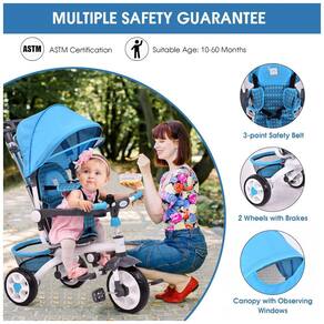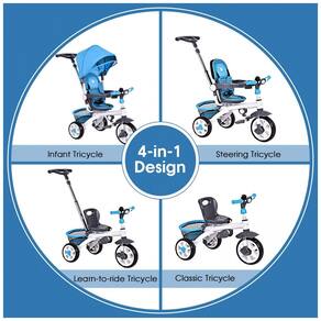 Triciclo Infantil 4 em 1 com Alça Removível, Sino, Assento Giratório e Cesta de zenamento para Crianças de 1 a 5 anos, Costzon, Azul
