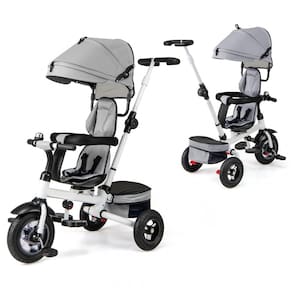 Triciclo para bebês 4 1: O dossel e a haste são fáceis de desconectar e o apoio para os pés pode ser dobrado conforme necessário. Este triciclo para bebês pode ser convertido em vários modos, triciclo infantil, triciclo de direção, triciclo de treinamento e triciclo clássico. será um investimento gratificante pois poderá acompanhar os seus filhos de 1 a 5 Anos.