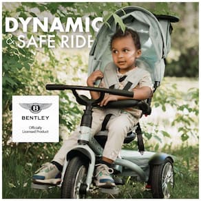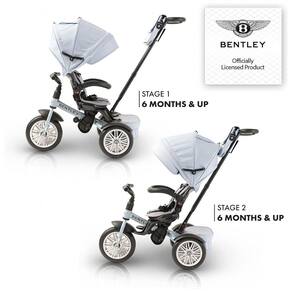 OFICIALMENTE LICENCIADO E PROJETADO PELA BENTLEY MOTORS UK Este triciclo 6 em 1 faz uma declaração ousada onde quer que você vá. Ele se transforma de um triciclo infantil em um triciclo infantil grande à medida que seu bebê cresce dos 6 meses aos 5 Anos.