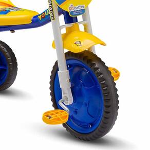 Triciclo Infantil - Aro 5 - You 3 Boy - Amarelo e Azul - Nathor: As primeiras pedaladas das crianças são muito mais seguras e divertidas este lindo modelinho. Completamente dinâmico e ergométrico, possui um pedalar macio, silencioso e confortável. Este triciclo infantil é indicado para crianças a partir de 18 meses ou com altura entre 85cm e 100cm. Diversão garantida para as crianças. O triciclo Nathor tem quadro, garfo e guidão em alumínio, por isso é super leve (pesa só 2kg) e garante mais durabilidade (não enferruja). Seus pneus em E.V.A. são silenciosos, menos escorregadios, mais leves e duráveis. Para evitar acidentes, o Triciclo Aro 5 You 3 Boy Nathor ainda conta com limitador de giro do guidão, mecanismo que impede que a criança consiga virar demais o guidão e, consequentemente, se desequilibrar. As manoplas são fabricadas em material atóxico, e buzina “fon-fon” faz a brincadeira ficar ainda mais animada! CARACTERÍSTICAS: - Quadro, garfo e guidão em alumínio; - Pneus em E.V.A.; - Manoplas em elastômero TPE atóxico; - Limitador de giro do guidão; - Plaquinha; - Buzina “fon-fon”. INFORMAÇÕES: • Produto: Triciclo Infantil You 3 Boy • Marca: Nathor • Tamanho da roda: Aro 5 • Peso máximo recomendado: 21 Kg • Altura máxima recomendada: 85cm a 100cm • Dimensões do produto (CxAxL): 64 cm x 52 cm x 46 cm • Idade recomendada: para crianças a partir de 18 meses de idade BENEFÍCIOS DE ANDAR DE TRICICLO - Fortalece a massa óssea, articulações e músculos - Reduz a ansiedade e o estresse - Estimula a atenção e o senso de direção e noção de espaço - Estimula o equilíbrio e a coordenação motora - Combate a obesidade e aumenta a resistência física - Colabora com a autoestima e a autoconfiança - Estimula a criatividade e imaginação AVISO: • As imagens são meramente ilustrativas. As cores e estampas dos produtos podem ter variações. As informações são de responsabilidade do fabricante ou fornecedor. ATENÇÃO • Triciclo Infantil - Aro 5 - You 3 Boy - Amarelo e Azul - Nathor ficou fácil. Aproveite nossas condições de pagamento. Oferta válida por tempo limitado ou enquanto durarem os estoques.