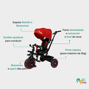 - Conteúdo da Embalagem: 1 Triciclo com Empurrador Maxi Toys