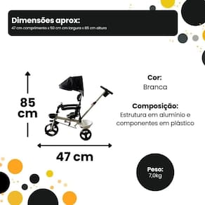 Contém: 01 Triciclo Infantil com Empurrador Comfort Branco