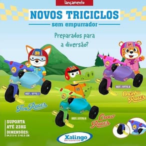 Chegou o novo triciclo desenvolvido pela Xalingo que veio para alegrar muito a criançada! Recomendado a partir dos 12 meses até os 36 meses com máximo de 23 Kg, ele possui design que encanta as crianças. Além de auxiliar no desenvolvimento motor e espacial do pequeno(a). Venha dar o melhor presente para os seus filhos!