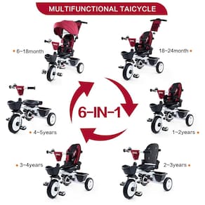 6 em 1 triciclo com design multifuncional, este triciclo infantil grande pode ser transformado em 6 modos de uso. Nossos triciclos infantis 6 em 1 para crianças serão uma das boas lembranças da infância de seus filhos.