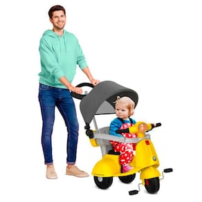 Triciclo Infantil - Passeio e Pedal - Banderetta com Capota - Amarelo - Bandeirante: o Triciclo Banderetta Passeio e Pedal da Bandeirante é um brinquedo prático e divertido inspirado em uma Scooter. As crianças vão se divertir passeando e brincando. Ele possui assento anatômico com altura ideal para subir e descer do triciclo. O cercado de proteção também torna o passeio muito mais seguro, impedindo que a criança caia. Sabe o melhor? Quando a criança estiver preparada para dar as primeiras pedaladas, basta remover a haste de empurrar, o cercado de proteção e o apoio para os pezinhos e deixá-la pedalar a vontade! Duas funções: • Função Passeio: O adulto utiliza a haste não direcionável para conduzir a scooter. Basta destravar o dispositivo de roda livre, colocar o cercado de proteção e apoio dos pés. • Função Pedal: Permite à criança pedalar livremente como um triciclo convencional. Basta travar o dispositivo de roda livre, remover a haste, o cercado e o apoio dos pés. Detalhes: • Haste direcionável e removível • Dispositivo de roda livre: Transforma o pedal em apoio para os pés da criança enquanto a scooter é movimentada • Assento anatômico confortável, com baixa distância do solo e altura ideal para a criança subir e descer de forma fácil e segura • Apoio traseiro anatômico • Apoio para os pés removível: Mantém os pés da criança apoiados confortavelmente • Rodas com anel de proteção • Guidão chip sonoro e luz de LED • Cercado de proteção removível e com suporte para garrafa d’água, mamadeira ou squeeze Suporte para Bolsa/sacola (na alça da haste) • Baú sob o assento • Cesto traseiro • Capota articulável, retrátil e removível Informações • Produto: Triciclo Scooter Passeio e Pedal Banderetta com Capota • Marca: Brinquedos Bandeirante • Coleção: Banderetta • Tipo: Triciclo de Passeio e Pedal - 2 em 1 • Categoria: Mini Veículos de Passeio • Dimensões (C x A x L): 95 x 97.8 cm x 41 cm • Peso máximo suportado: até 30 kg • Altura máxima sugerida: 1.12m • Conteúdo - 01 Triciclo - 01 Haste Removível - 01 Suporte para pés removível - 01 Cercado de proteção removível - 01 Capota removível • Recomendação: - Passeio: a partir de 12 meses de idade - Pedal: a partir de 24 meses de idade Especificações: • Referência: 1240 • Código de Barras: 7899091412402 • Embalagem (C x A x L): 62 x 37 x 41 cm • Embalagem (Peso): 5.75 kg • Composição / Material: Plástico • Registro: 003833/2021 OCP:0061 • Certificado: Órgãos Autorizados - OCP´S (Organismos de Certificação de Produtos) Aviso: • As imagens são meramente ilustrativas • Os pesos, tamanhos e medidas são aproximados • As cores e estampas dos produtos podem ter variações • As informações são de responsabilidade do fabricante ou fornecedor