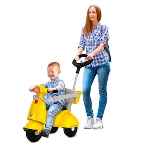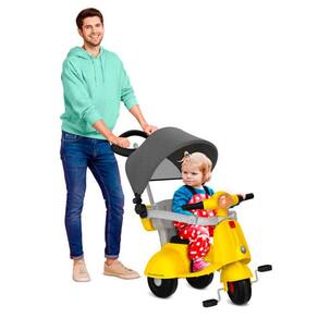 Triciclo Infantil - Passeio e Pedal - Banderetta com Capota - Amarelo - Bandeirante: o Triciclo Banderetta Passeio e Pedal da Bandeirante é um brinquedo prático e divertido inspirado em uma Scooter. As crianças vão se divertir passeando e brincando. Ele possui assento anatômico com altura ideal para subir e descer do triciclo. O cercado de proteção também torna o passeio muito mais seguro, impedindo que a criança caia. Sabe o melhor? Quando a criança estiver preparada para dar as primeiras pedaladas, basta remover a haste de empurrar, o cercado de proteção e o apoio para os pezinhos e deixá-la pedalar a vontade! Duas funções: • Função Passeio: O adulto utiliza a haste não direcionável para conduzir a scooter. Basta destravar o dispositivo de roda livre, colocar o cercado de proteção e apoio dos pés. • Função Pedal: Permite à criança pedalar livremente como um triciclo convencional. Basta travar o dispositivo de roda livre, remover a haste, o cercado e o apoio dos pés. Detalhes: • Haste direcionável e removível • Dispositivo de roda livre: Transforma o pedal em apoio para os pés da criança enquanto a scooter é movimentada • Assento anatômico confortável, com baixa distância do solo e altura ideal para a criança subir e descer de forma fácil e segura • Apoio traseiro anatômico • Apoio para os pés removível: Mantém os pés da criança apoiados confortavelmente • Rodas com anel de proteção • Guidão chip sonoro e luz de LED • Cercado de proteção removível e com suporte para garrafa d’água, mamadeira ou squeeze Suporte para Bolsa/sacola (na alça da haste) • Baú sob o assento • Cesto traseiro • Capota articulável, retrátil e removível Informações • Produto: Triciclo Scooter Passeio e Pedal Banderetta com Capota • Marca: Brinquedos Bandeirante • Coleção: Banderetta • Tipo: Triciclo de Passeio e Pedal - 2 em 1 • Categoria: Mini Veículos de Passeio • Dimensões (C x A x L): 95 x 97.8 cm x 41 cm • Peso máximo suportado: até 30 kg • Altura máxima sugerida: 1.12m • Conteúdo - 01 Triciclo - 01 Haste Removível - 01 Suporte para pés removível - 01 Cercado de proteção removível - 01 Capota removível • Recomendação: - Passeio: a partir de 12 meses de idade - Pedal: a partir de 24 meses de idade Especificações: • Referência: 1240 • Código de Barras: 7899091412402 • Embalagem (C x A x L): 62 x 37 x 41 cm • Embalagem (Peso): 5.75 kg • Composição / Material: Plástico • Registro: 003833/2021 OCP:0061 • Certificado: Órgãos Autorizados - OCP´S (Organismos de Certificação de Produtos) Aviso: • As imagens são meramente ilustrativas • Os pesos, tamanhos e medidas são aproximados • As cores e estampas dos produtos podem ter variações • As informações são de responsabilidade do fabricante ou fornecedor