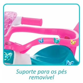 Triciclo Infantil - Passeio e Pedal - Butterfly - Rosa - Magic Toys: o Triciclo Butterfly possui um lindo design inspirado em borboleta. Ele vai acompanhar os passeios e brincadeiras das crianças por muito tempo já que possui dois modos de uso: passeio e pedal. Além disso, conta com acessórios indispensáveis como haste, aro de proteção e suporte para os pés - todos removíveis. Duas funções: • Função Passeio: O adulto utiliza a haste (não direcionável) para conduzir o triciclo. Colocar o aro de proteção e apoio dos pés. • Função Pedal: Permite à criança pedalar livremente como um triciclo convencional. Basta remover a haste, o aro de proteção e o apoio dos pés. Detalhes: • Aro de proteção removível • Haste removível • Assento anatômico • Suporte para os pés • Sem luz Informações • Produto: Triciclo Passeio e Pedal Butterfly Rosa • Marca: Magic Toys • Coleção: Butterfly • Tipo: Triciclo de Passeio e Pedal - 2 em 1 • Categoria: Mini Veículos de Passeio • Dimensões (C x A x L): 97 x 80 cm x 41.5 cm • Peso do produto: 2,6 kg • Peso máximo suportado: até 25 kg • Conteúdo - 01 triciclo - 01 haste Removível - 01 apoio para pés removível - 01 aro de proteção removível • Recomendação: - Passeio: a partir de 12 meses de idade - Pedal: a partir de 24 meses de idade Especificações: • Referência: 2575 • Código de Barras: 7896839925750 • Embalagem (C x A x L): 51.7 x 26.9 x 39.2 cm • Embalagem (Peso): 2.7 kg • Composição / Material: Polipropileno • Registro: 000 101/2022 • Certificado: Órgãos Autorizados - OCP´S (Organismos de Certificação de Produtos) Benefícios de brincar: • Eleva a autoestima • Exercita a memória • Estimula o raciocínio • Exercita o imaginário • Desenvolve a criatividade • Desenvolve percepção visual • Desperta a atenção e curiosidade • Desenvolvimento neuropsicológico • Estimula habilidades motoras básicas • Incentiva a comunicação e linguagem • Desenvolve aspectos emocionais e afetivo • Estimula o reconhecimento de formas e cores Aviso: • As imagens são meramente ilustrativas • Os pesos, tamanhos e medidas são aproximados • As cores e estampas dos produtos podem ter variações • As informações são de responsabilidade do fabricante ou fornecedor