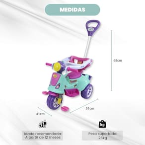 Itens Inclusos no Pacote: - 01 Triciclo Avespa Pink 3173 - Maral - 01 Par de apoio de pés - 01 Aro protetor - 01 Haste empurradora - 01 Manual de Instruções