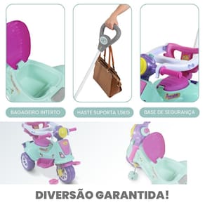 Descrição Inspiradora: Deixe seu pequeno explorador desbravar o mundo com estilo! O Triciclo Avespa Pink é projetado para oferecer duas funções: passeio e pedal. Ele é o companheiro ideal que cresce com seu filho, promovendo coordenação motora e curiosidade enquanto as crianças navegam por novas descobertas.