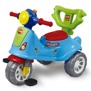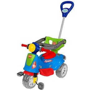 Embarque nessa aventura com o Triciclo Avespa da Maral! Com o Triciclo Maral Avespa as crianças terão diversas aventuras emocionantes! Este Triciclo é um brinquedo 2 em 1 que conta com duas funções, passeio e pedal. Na função passeio ele possui anel de proteção com barra adicional de segurança e haste com suporte para bolsa e serve para o responsável guiar. Já na função pedal, o pequeno já tem autonomia para se divertir com a buzina e se deslocar por conta própria com segurança. Além disso, o pedal possui eixo de aço, conta com apoio para os pés e punho emborrachado, garantindo uma brincadeira segura e divertida para os seus pequenos!