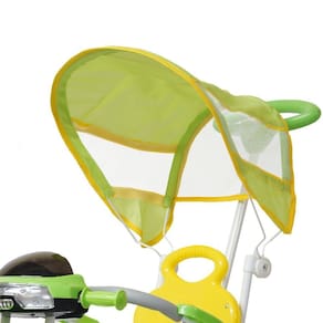 Fabricado com materiais que conferem alta resistência e eficiência ao produto. O Triciclo Motoca é o companheiro ideal para as aventuras dos pequenos. Com aro protetor, apoio de pés, empurrador e pedais, a segurança e a alegria estão garantidas. Tirando os acessórios, vira motoquinha e a criança pode pedalar livremente. As crianças podem levar sua garrafinha de água no compartimento na frente ou atrás do carrinho. Toca música e acende luzes. Ideal para passeios com seu filho(a) no parque, na rua, no shopping, além de um triciclo para empurrar. Vai com capota (pequeno toldo) removível para proteger do sol.