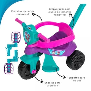 CARACTERÍSTICAS Estimula Coordenação Motora: Ajuda no desenvolvimento da coordenação e equilíbrio das crianças. Protetor de Corpo e Haste: Oferece segurança e conforto durante o passeio. Suporte para os Pés: Facilita o uso do triciclo e proporciona mais estabilidade. Versatilidade: Ideal para brincar em casa, na rua ou na praça. Desenvolvimento Infantil: Incentiva o aprendizado por imitação, atenção, concentração e habilidades sociais.