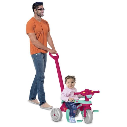 FUNÇÃO PASSEIO: O adulto utiliza a haste (não direcionável) para conduzir o triciclo.