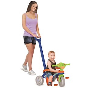 Projetado com dupla funcionalidade, o triciclo Mototico apresenta a função pedal, que possibilita que as crianças mais autônomas brinquem livremente, e a função passeio, recomendada para os mais novinhos, que ainda necessitam do auxílio de um adulto. Nesse último caso, é preciso utilizar a haste (não direcionável) para movimentar o veículo.