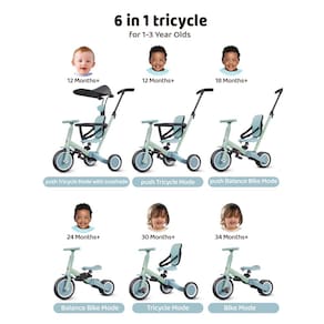 Descubra o máximo em versatilidade com nosso triciclo 6 em 1, projetado para acompanhar seu filho em todas as fases de seu crescimento e desenvolvimento. Feito pensando na qualidade e na segurança, este triciclo possui seis configurações exclusivas para se adaptar perfeitamente às crescentes necessidades de seu filho. Desde os primeiros dias da direção guiada pelos pais até a pedalada independente, nosso triciclo se transforma facilmente para proporcionar uma experiência personalizada em todas as idades. Com recursos ajustáveis e construção durável, ele garante anos de uso confiável e inúmeras aventuras memoráveis. A segurança é fundamental, e é por isso que nosso triciclo é equipado com um assento confortável, um cinto seguro e uma cobertura protetora para proteger seu filho dos elementos. Seja um passeio tranquilo pelo quarteirão ou um passeio emocionante pelo parque, este triciclo oferece tranquilidade para você e seu filho. Cores brilhantes e envolventes e um design elegante tornam nosso triciclo multifuncional uma escolha de destaque para jovens pilotos. Incentive a exploração ao ar livre e a brincadeira ativa com essa adição versátil e elegante às aventuras de seu filho. Experimente a alegria do crescimento e da descoberta com nosso triciclo 6 em 1, o companheiro perfeito para cada viagem. - Design versátil 6 em 1: transita perfeitamente entre o triciclo Push com dossel, o triciclo Push, o modo Push Balance Bike, o modo triciclo, o modo Balance Bike e o modo Bike, atendendo a todas as fases do desenvolvimento do seu filho. - Adequado para a idade: adequado para meninos e meninas de 1, 2 e 3 anos, garantindo uso e diversão a longo prazo. - Focado na segurança: possui um guidão giratório de 135 graus para controlar a velocidade e a direção, protegendo seu filho de quedas e ferimentos. - Ajustável para maior conforto: personalize facilmente o guidão, o assento e os pedais pressionando um botão, proporcionando conforto ideal à medida que seu filho cresce. - Construção durável: fabricada com uma estrutura de aço carbono e rodas de EVA que absorvem choques, aprovadas pela EN188 e ASTM para segurança e longevidade.