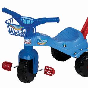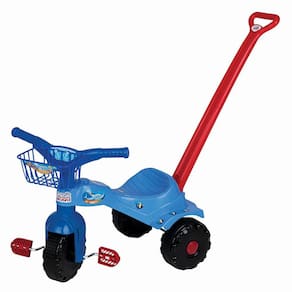O modelo Triciclo Tubarão tem assento anatômico que deixa super confortável o uso, haste removível para auxiliar a mamãe no passeio e cestinha. Prático com muita diversão!