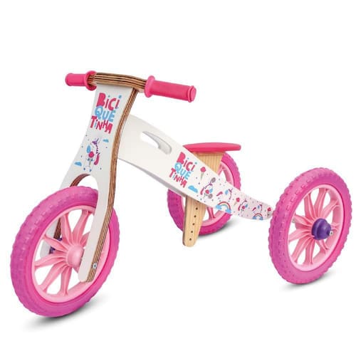 Triciclo 2 em 1 vira bicicleta de equilíbrio sem pedal unicórnio rosa Triciclo unicórnio rosa madeira sem pedal madeira rosa O melhor e mais bonito triciclo sem pedal 2 em 1 que se transforma em bike de equilíbrio infantil. Bicicleta sem pedal nacionalBiciquétinha traz ao brasil a bicicleta de madeira sem pedal que proporciona o equilíbrio para o público infantil. O triciclo possibilita que os bebês comecem a usar a partir dos 16 meses para que depois, a partir dos 2 anos, use na forma de bicicleta de equilíbrio infantil, com um conceito de qualidade e produção 100% nacional. Tudo feito com muita atenção e cuidado.Bicicletinha de equilíbrio balance bike modelo unicórnio 100% nacional e 100% de madeira reflorestada, com valorização de produtores locaisMateriais de qualidade: compensado naval resistente à umidade e multilaminado resistente à impactos , rodas aro 12 com pneu 100% eva não fura e não esvazia , manoplas em borracha e assento estofado com regulagem de altura.- idade indicada bicicleta sem pedal: acima de 2 anos e até 25 kg.- 06 regulagens de altura do banco: de 30 a 41 cm recomendado que a medida entre o chão e a virilha da criança tenha 5 cm a mais do que a altura do banco.Triciclo 2 em 1 e bicicleta de equilíbrio de madeiraConceito: um produto leve também na consciência: biciquétinha bicicleta de equilíbrio de madeira foi construída pensando no desenvolvimento das crianças e no futuro. Sua matéria-prima, um compensando naval multilaminado é 100% brasileira e originária de madeira de reflorestamento. Um detalhe que traz leveza, resistência e praticidade, permitindo que ela possa ser facilmente carregada para qualquer lugar.Porque é sucesso na europa: os primeiros passos para pedalar, é não pedalar.Na primeira infância, as crianças ainda não estão prontas para pedalar. Biciquétinha bicicleta de equilíbrio é mais segura pois permite que a criança apoie os pés no chão a qualquer momento, tendo o controle em tempo integral e desenvolvendo a autoconfiança. As manoplas de borracha ajudam as crianças, e os pneus de eva maciço garantem conforto e aderência ao chão. Propositar pais e filhos brincarem juntos ao ar livre, sentir o vento, aprender brincando. Isso que sonhamos com a biciquétinha, oportunizar para mais crianças do brasil terem acesso aos conceitos das bicicletas de equilíbrios já consolidadas na europa, para que elas também aprendam a se equilibrar, desenvolvam a autoconfiança e coordenação motora, com rápido aprendizado e diversão. Diferenciais:- compensado naval multilaminado resistente à impacto e à umidade ;- banco em espuma e altura regulável;- pneus aro 12 em eva não fura e não esvazia ;- manoplas emborrachadas com proteção lateral;- 100% feito no brasil fácil manutenção e garantia ;- 100% madeira reflorestada;- estampa impressa na madeira não é adesivo com pintura em verniz protetora.CaracterísticasPeso: 2,8 kg triciclo e 2,0 bicicleta de equilíbrio super leve - criança consegue carregar Dimensões: l x p x h : 70x50x17 cm caixa l x h x c 82 x 50 x 36 cm produto Modelo: triciclo unicórnioMarca: biciquétinhaGarantia: 01 anoIdade ideal: acima de 14 meses triciclo e a partir de 2 anos bicicleta .Peso máximo: aguenta até 25kgAltura máxima do banco: 41 cm ideal que a criança tenha até 46 cm entre o chão e a virilha Certificação inmetroCe-bri/brics 00648-17Nm300/2002 - ocp 0098 Marca: Biciquetinha