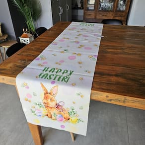 Decoração de Páscoa: O caminho de mesa é perfeito para adicionar um toque encantador e acolhedor à sua mesa de Páscoa, destacando as flores margaridas e o coelho em sua decoração. Eventos e Jantares Especiais: Ideal para almoços e jantares de Páscoa, criando um ambiente alegre e sofisticado para você e seus convidados. Decoração Diária: Perfeito para usar durante toda a temporada de Páscoa, trazendo um charme especial e leveza para a sua mesa todos os dias. Combina com Diversos Estilos: A estampa alegre e suave das margaridas e o toque delicado do coelho complementam diferentes estilos de decoração, desde os mais modernos até os mais rústicos, criando uma atmosfera encantadora.
