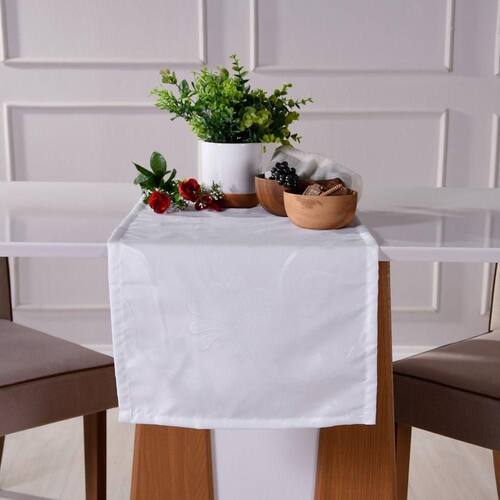 Trilho De Mesa 40x140 Damask Ligamento Cetim Branco Trilho de Mesa 40x140 Damask Ligamento Cetim Branco - Trilho de Mesa Damask: O trilho de mesa damask é uma peça refinada e elegante para adornar o centro da sua mesa. Esse trilho é feito utilizando a técnica de tecelagem jacquard, que permite a criação de padrões complexos e detalhados no tecido. Seu tecido possui um brilho suave e uma textura luxuosa, com seus padrões em ligamento cetim jacqard adamascado que criam um padrão de desenhos em alto relevo e com acabamento sofisticado Peça chave: Pode ser usada em eventos formais, jantares elegantes ou ocasiões especiais, pois adicionam um toque de glamour à decoração da mesa, podendo ser colocado em seu centro para servir de base para arranjos de flores, velas ou outros elementos decorativos.