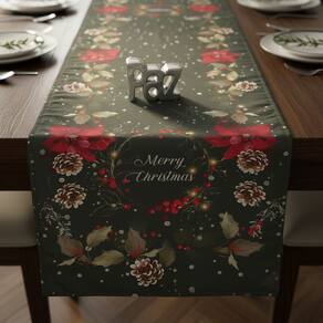 Trilho de Mesa estampa Merry Christmas 1,43 x 0,46