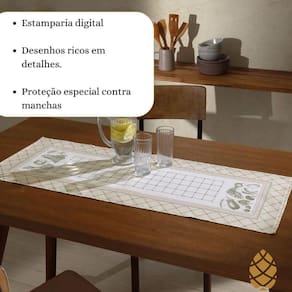 Especificações Técnicas: - Tamanho: 37cm x 1,00m - Composição: 50% algodão e 50% poliéster - Tecnologia Dohler Clean: proteção especial contra manchas - Estamparia digital: desenhos vívidos e ricos em detalhes - Tela mista de alta qualidade - Gramatura: 167 g/m