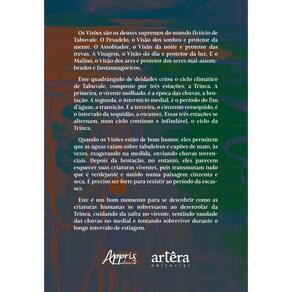 Os Visões são os deuses supremos do mundo fictício de Tabuvale. O Pesadelo, o Visão dos sonhos e protetor da mente. O Assobiador, o Visão da noite e protetor das trevas. A Visagem, o Visão do dia e protetor da luz. E o Malino, o Visão dos ares e protetor dos seres mal-assombrados e fantasmagóricos. Esse quadrângulo de deidades criou o ciclo climático de Tabuvale, composto por três estações, a Trinca. A primeira, o virente molhado, é a época das chuvas, a brotação. A segunda, o interstício medial, é o período do fim d’águas, a transição. E a terceira, o cinzento ressequido, é o intervalo da sequidão, a escassez. Essas três estações se alternam, num ciclo contínuo e infindável, o ciclo da Trinca. Quando os Visões estão de bom humor, eles permitem que as águas caiam sobre tabuleiros e capões de mato, às vezes, exagerando na medida, enviando chuvas torrenciais. Depois da brotação, no entanto, eles parecem esquecer suas criaturas viventes, pois transmutam tudo que é verdejante e úmido numa paisagem cinzenta e seca. É preciso ser forte para resistir ao período da escassez. Este é um bom momento para se descobrir como as criaturas humanas se sobressaem ao desenrolar da Trinca, cuidando da safra no virente, sentindo saudade das chuvas no medial e tentando sobreviver durante o longo intervalo de estiagem.