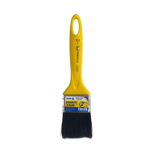 Informações técnicas: Tamanho: 2 50,8mm Cor: Amarelo Materiais: - Cabo: Plástico - Cerdas: Sintético Superfícies aptas: Paredes de alvenaria, madeira, gesso e drywall, metal e tetos Referência: 519 Indicado para: Tinta esmalte e óleo Cerdas macias Marca: Não Informado