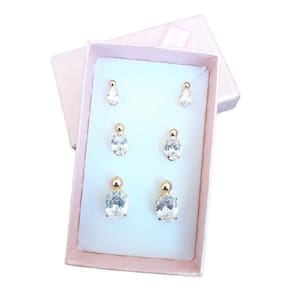 Kit com 3 pares de Brincos trio banhado a ouro com zircônia em formato oval. Tamanho das Peças: 1 - Pedra de 1,0 cm. Total de 1,5 cm 2 - Pedra de 0,8 cm. Total de 1,3 cm 3 - Pedra de 0,6 cm. Total de 0,9 cm Lindo para daminhas ou adultos. Podem ser separadamente, mãe e filha, noiva e daminha, etc. Consulte o logo abaixo do valor do produto. Marca: Não Informado