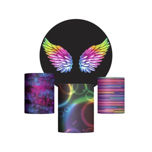 Trio capa cilindro + painel redondo asas neon tecido 1,50m Medida do painel: 1,50m x 1,50m serve para estruturas de 1,20m a 1,50m Medida do trio de capa para cilindro:Tamanho p: a altura: 45cm // d diâmetro: 38cm // c circunferência: 120cmTamanho m: a altura: 58cm // d diâmetro: 44cm // c circunferência: 139cmTamanho g: a altura: 80cm // d diâmetro: 50cm // c circunferência: 158cm Acabamento com elástico Não acompanha cilindro em mdf e suporte Chegou a novidade que todos esperavam, o kit capa de cilindro de tecido da decor. Com a mesma qualidade de nossos painéis, para unificar aos painéis e dar mais charme a sua festa. Assim como nossos painéis são impressos em tecido dando uma sensação de realidade para o ponto principal da decoração. Mais detalhes: - veste fácil. Ágil para instalar- não reflete luz do flash.- lavável.- pode ser passado a ferro.- fácil transporte e armazenamento. Observações importantes: -as alterações devem ser solicitadas antes da compra, sujeitas a cobranças adicionais Vantagens dos painéis e capas de cilindros:Conheça, a seguir, as principais vantagens de adotar os painéis de tecido sublimado em sua festa -não deformaO tecido não deformam com o tempo, garantindo economia ao longo prazo. O tecido também não apresenta vincos, não amassa e pode ser lavado sem perder a qualidade de sua impressão. -sem brilhoEm ambientes iluminados, o tecido não reflete a luz, o que poderia deixar parte da capa ofuscado pelo brilho da iluminação local. -não retém águaO tecido de poliéster tem um grau de absorção da água muito baixo, em torno de 0,5%. Ele não molha como qualquer outro material, e mesmo aconteça, tem a capacidade de secar muito rapidamente, além de boa resistência à abrasão e aos solventes orgânicos. Painel de festa, painel de festa infantil, decoração festa infantil, festa infantil decoração, como decorar sua festa infantil, cenários para festa, festa com tecido sublimado, capa de cilindro para festa, display de festa infantil, cilindro para festa, cilindro festa, painel de festa infantil, kit festa provençal,3 capas cilindro, cilindro, painel de festa redondo como encapar, cortina para festa, cilindros, painel redondo de festa, como montar painel redondo para festa