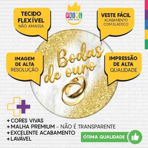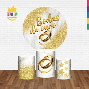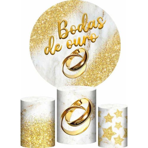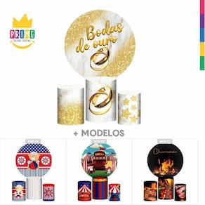 Trio capa cilindro + painel redondo bodas de ouro tecido 1,50m Medida do painel: 1,50m x 1,50m serve para estruturas de 1,20m a 1,50m Medida do trio de capa para cilindro:Tamanho p: a altura: 48cm // d diâmetro: 39cm // c circunferência: 122cmTamanho m: a altura: 60cm // d diâmetro: 45cm // c circunferência: 141cmTamanho g: a altura: 80cm // d diâmetro: 51cm // c circunferência: 160cm Acabamento com elástico Não acompanha cilindro em mdf e suporte Chegou a novidade que todos esperavam, o kit capa de cilindro de tecido da decor. Com a mesma qualidade de nossos painéis, para unificar aos painéis e dar mais charme a sua festa. Assim como nossos painéis são impressos em tecido dando uma sensação de realidade para o ponto principal da decoração. Mais detalhes: - veste fácil. Ágil para instalar- não reflete luz do flash.- lavável.- pode ser passado a ferro.- fácil transporte e armazenamento. Observações importantes: -as alterações devem ser solicitadas antes da compra, sujeitas a cobranças adicionais Vantagens dos painéis e capas de cilindros:Conheça, a seguir, as principais vantagens de adotar os painéis de tecido sublimado em sua festa -não deformaO tecido não deformam com o tempo, garantindo economia ao longo prazo. O tecido também não apresenta vincos, não amassa e pode ser lavado sem perder a qualidade de sua impressão. -sem brilhoEm ambientes iluminados, o tecido não reflete a luz, o que poderia deixar parte da capa ofuscado pelo brilho da iluminação local. -não retém águaO tecido de poliéster tem um grau de absorção da água muito baixo, em torno de 0,5%. Ele não molha como qualquer outro material, e mesmo aconteça, tem a capacidade de secar muito rapidamente, além de boa resistência à abrasão e aos solventes orgânicos. Marca: Prime Decor Festas