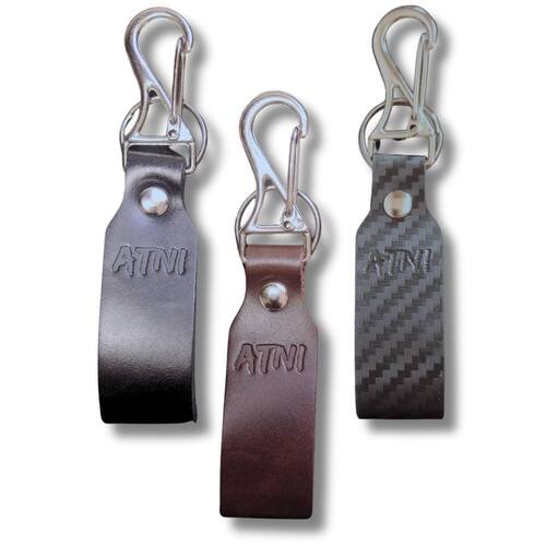 2 Chaveiros de Couro: Um preto e um marrom, perfeitos para quem aprecia a durabilidade e a sofisticação do couro verdadeiro. 1 Chaveiro de Couro PU: Com um elegante desenho de fibra de carbono, ideal para quem busca um toque moderno e diferenciado.