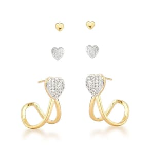 Trio De Brincos Argola E Dois Corações Banhados A Ouro 18k Trio de Brincos Argola e dois corações Banhados a Ouro 18k - Aprimore seu estilo com o maravilhoso Trio de Brincos Argola e Dois Corações Banhados a Ouro 18K. Este conjunto encantador combina a elegância das argolas com a doçura dos corações, permitindo que você varie seu look com facilidade e charme. Os brincos são banhados a ouro 18K, oferecendo um acabamento luxuoso e durabilidade excepcional, pronto para brilhar em qualquer ocasião. O trio é composto por um par de argolas e dois brincos em formato de coração, permitindo combinações variadas que se adaptam ao seu estilo e à sua necessidade. O design moderno e minimalista das argolas, junto à delicadeza dos corações, oferece uma estética que é ao mesmo tempo clássica e contemporânea.