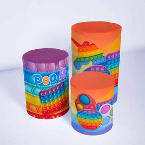 Trio de Capa Cilindro para Festa Infantil Veste Fácil C/elástico Popit - Fera Print - Cor: Trio Popit 2