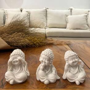 Trio de Esculturas Baby Monges Sábios de Pó de Mármore Trio de Esculturas Baby Monges Sábios de Pó de Mármore