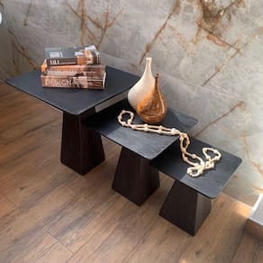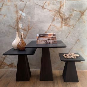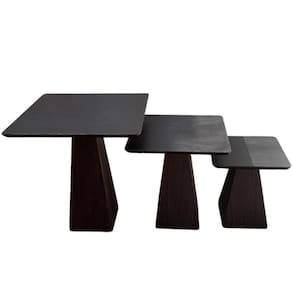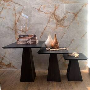 Trio de Mesas Laterais Cone Quadrada Tampo Ébano Base Ébano